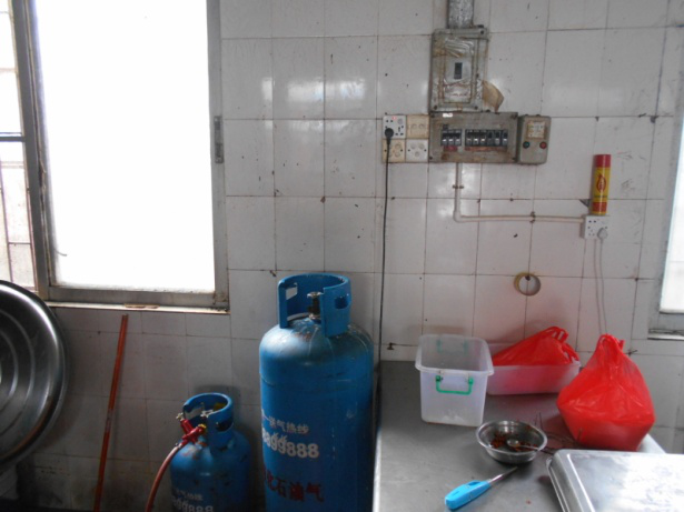 最后,督查组检查了工人饭堂,发现煤气瓶同炉灶安全距离不足、煤气管道超长、用电插座未接且未安装漏电开关、消防组织架构图未张名字及联系电话等问题。