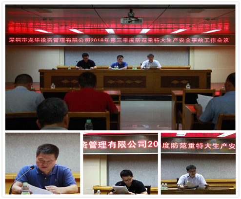为进一步加强龙华投管公司第三季度安全生产管理工作,杜绝各类安全事故发生,7月25日下午,龙华投管公司党委书记、董事长王海波同志在龙鹏大厦8楼会议室主持召开2018年第三季度防范重特大生产安全事故工作会议。党委副书记、总经理吕继纲同志,副总经理李正勇同志、各辖属企业主要负责人、安全生产分管领导、安全部门及各工业园区负责人参加了此次会议。会上,首先由正勇同志传达落实省、市、区安全生产工作相关文件和会议精神。